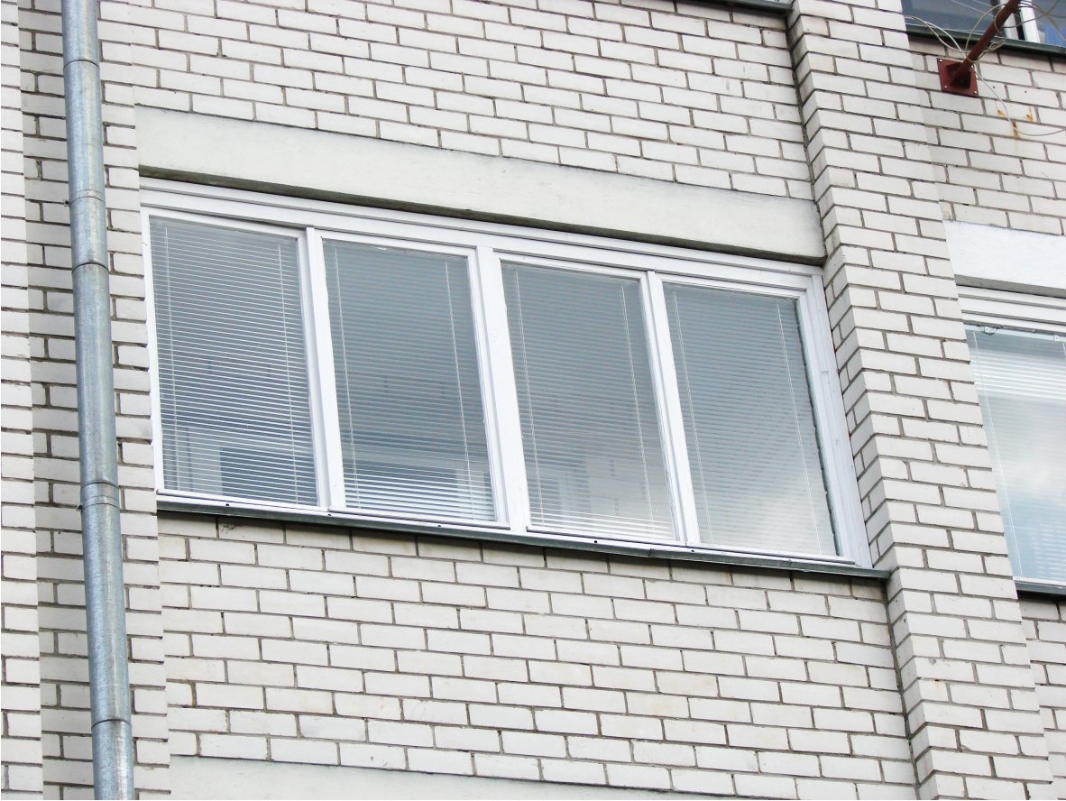 - Элементы остекления балконов и лоджий из ПВХ-профиля с распашными створками и остеклением стеклом, однокамерным стеклопакетом.